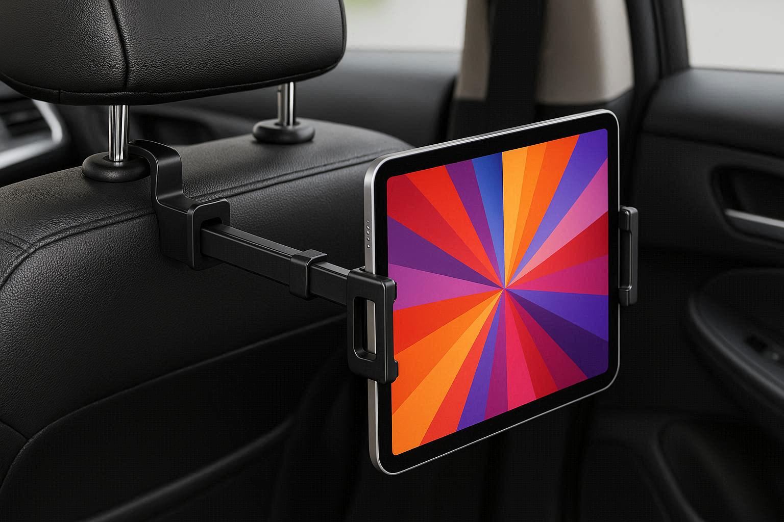 The holder includes a secure, padded grip to protect your tablet from scratches. This setup is ideal for long road trips, keeping children engaged with movies or games, or for creating a makeshift desk for light work. The installation requires no tools and can be transferred between vehicles in seconds.