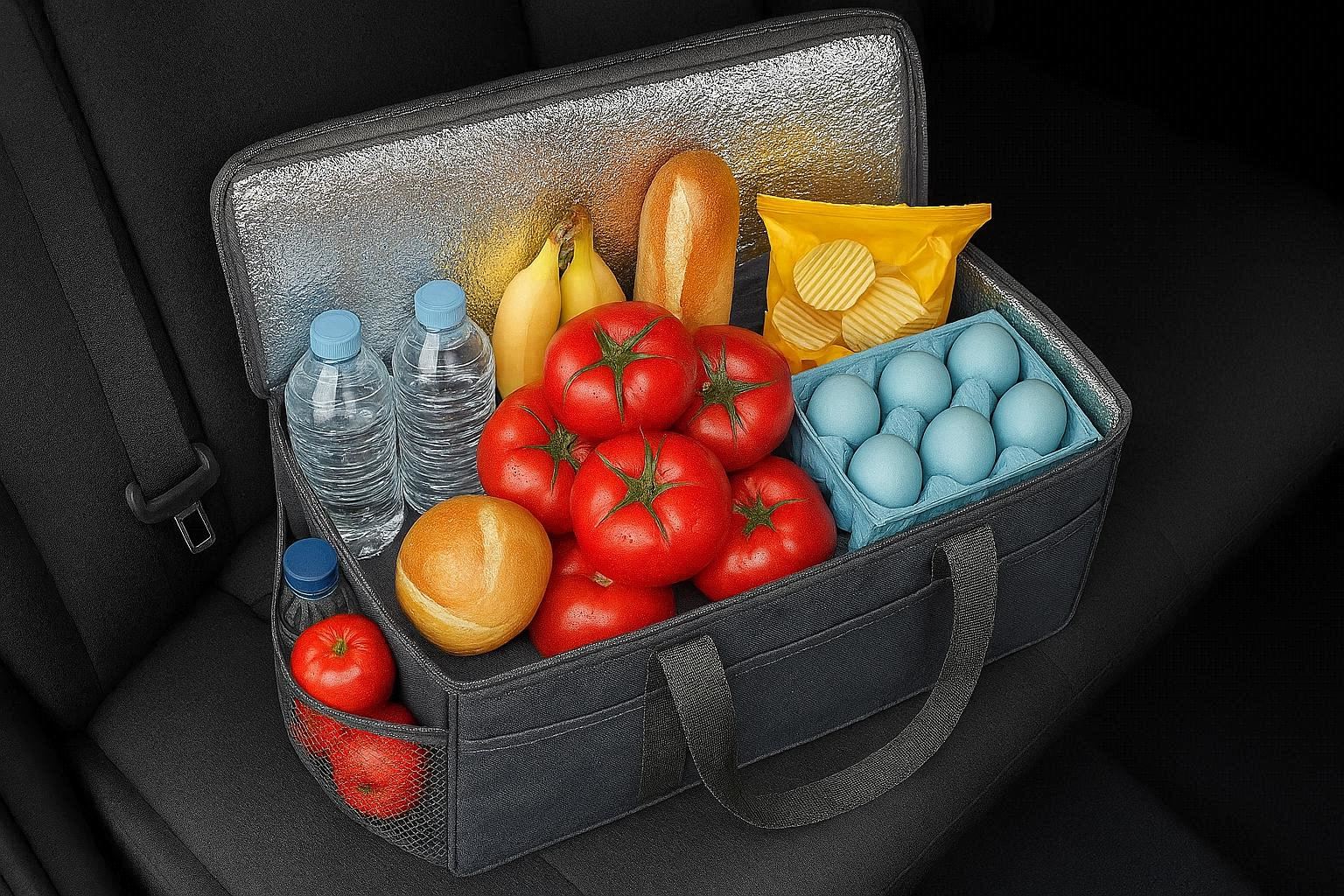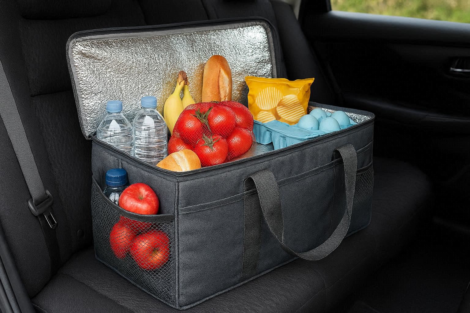 Insulated Car Cooler Organizer Bag for Groceries and Picnic Supplies